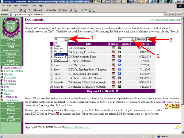 - Select the Level that controls this document from the next Dropdown Box. In this case "District IV" or "NSYSA"
